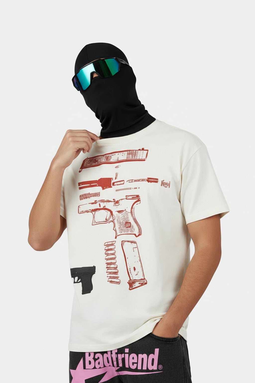 This Glock t-shirt delivers a sharp Y2K streetwear vibe with an unapologetic edge. It’s made to stand out whether you’re layering it or rocking it solo. Pair it with baggy jeans and sneakers for an instant throwback look.
